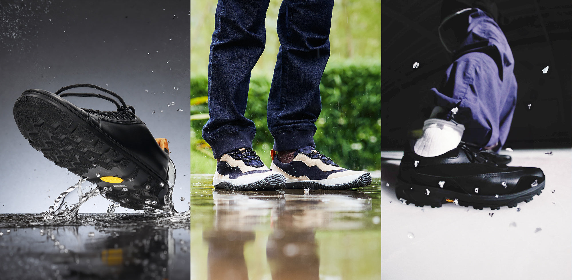優れた防水性能のゴアテックス、濡れた路面の上でも滑りにくいメガグリップ、氷の上でも滑りにくいアーキテックグリップなど、あらゆる環境に対応する靴を集めました。