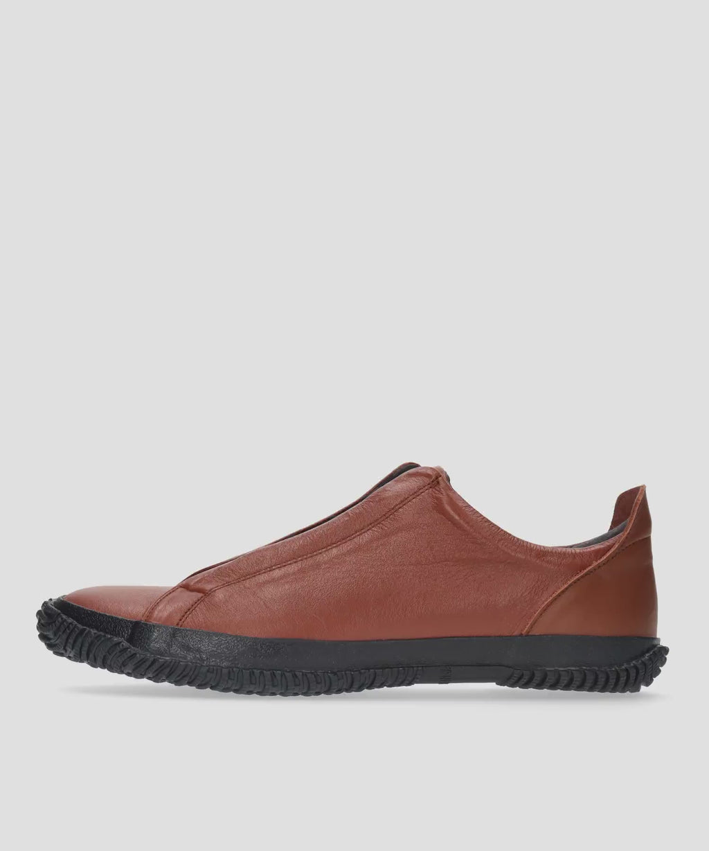 Kangaroo leather low-cut shoe which uses eyelet concealing flyfront tailoring to give a fashionable and minimalist look. Elasticized laces support easy putting on and taking off. The cup insole is removable and features cushioning, breathability, and anti-bacterial/odor control. This pair was designed for wear 365 days a year, for any occasion, from private to business.