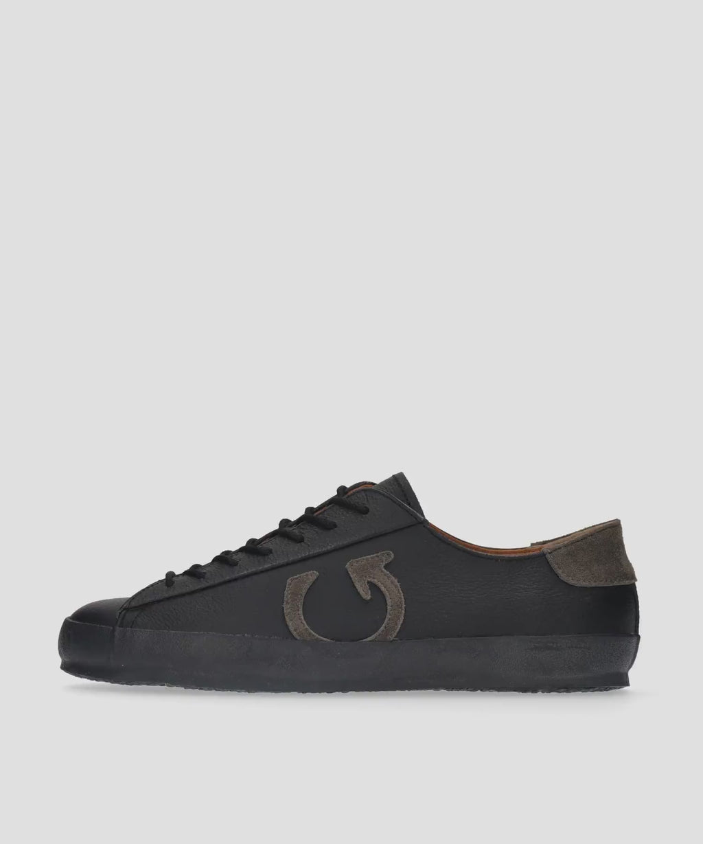 A modern trainer for adults with an impressive one-pointed Spingle logo ‘⟲’ mark on a minimal court-style sneaker with a simple form. The use of smooth-textured grained cow leather and goat suede with a short, fine texture creates a casual yet refined atmosphere without compromising the clean impression. The narrower distance between the outer blades when tying the laces gives a smart face and lean silhouette from all angles. The latte pad insole, developed uniquely with thickness in pursuit of comfort, fits along the shape of the foot sole and provides elasticity and cushioning comfort. This insole is a cup insole and can be removed. The clean lines and logo only decoration make it easy to match any style, and it is a highly versatile unisex pair that can be worn from casual to mode and business casual.